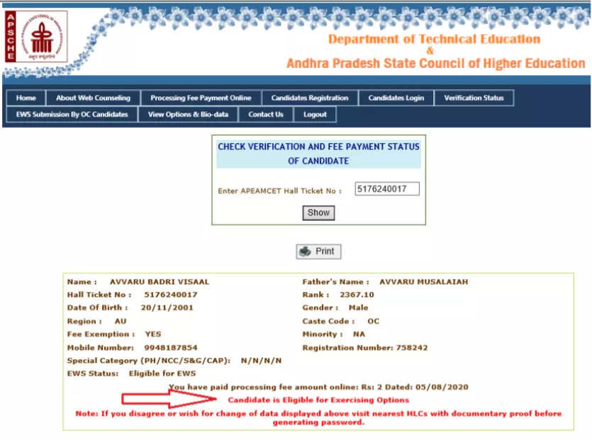 The candidate will be asked to verify the required certificates. The transaction of the Registration Fees should only be from the online mode. As all of you know that AP EAPCET Results for Engineering was released on the date 0th September 2021.